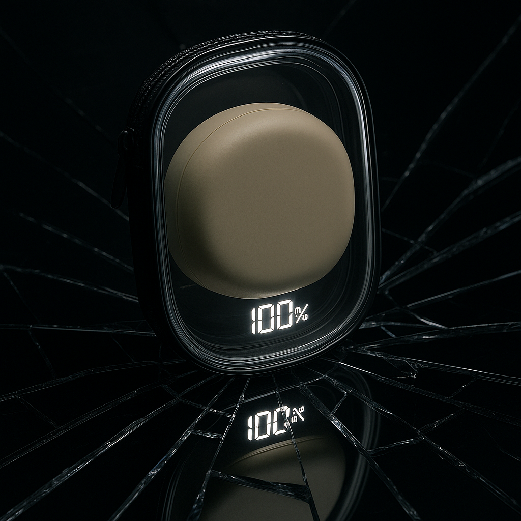 Say goodbye to anxiety. We've solved the three biggest fears of owning wireless earbuds. "Battery Anxiety" is eliminated with our crystal-clear digital display. "Loss Anxiety" is solved with the included FREE protective travel case. And "Social Anxiety" is soothed by a design so discreet, you can listen with total confidence. This is a tool you can rely on, always.